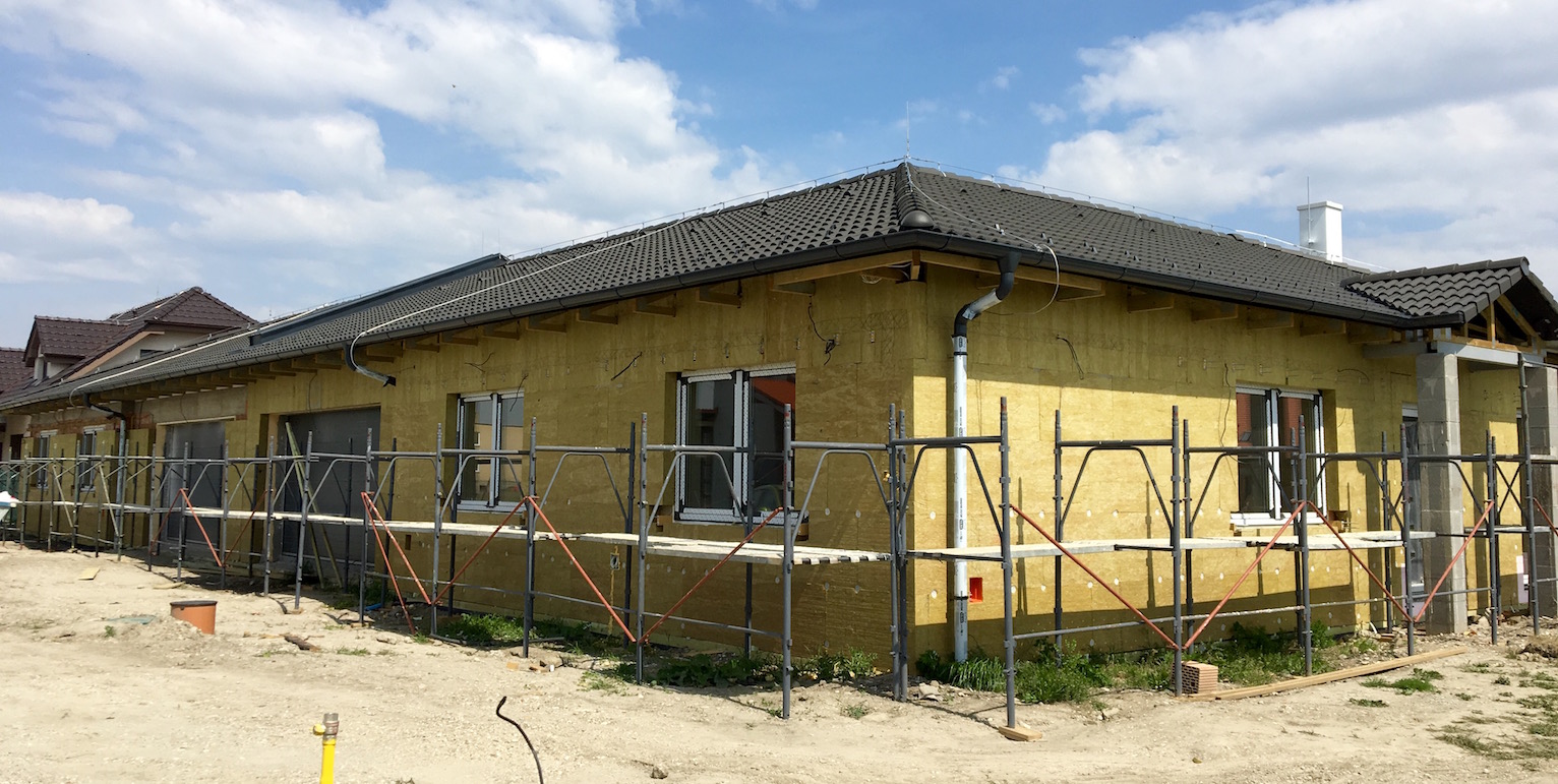 Výstavba dvojdomu z nášho katalógu so štvorgarážou na kľúč.