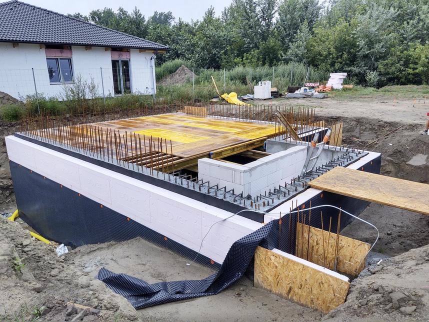 Základy sú navrhované ako monolitické betónové pásy, ktoré sú uložené do nezámrznej hĺbky. Pásy sú vybetónované bez technologickej prestávky ako jeden monolitický prvok. Suterénna časť je založená na železobetónovej doske z vodotesného betónu (biela vaňa), rovnako ako aj suterénne steny. Vonkajšie základy sú zateplené XPS polystyrénom.